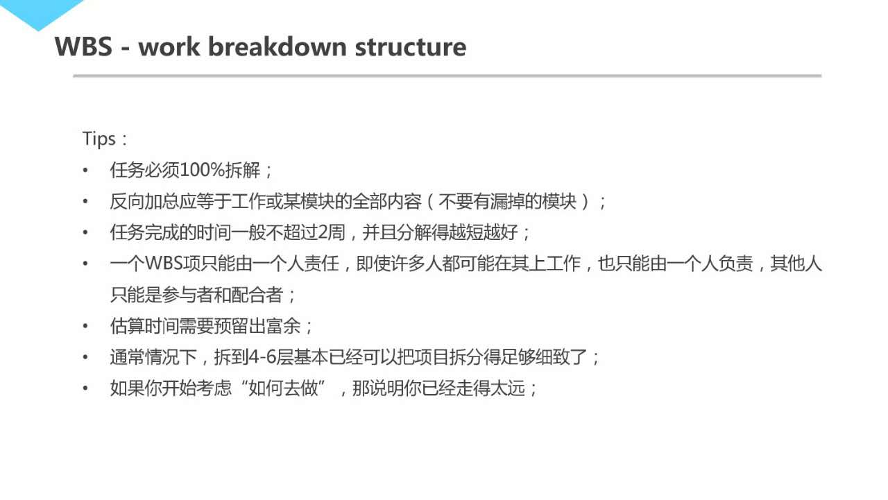 12、工作分解的方法論,涉及到很多細(xì)節(jié),需要有足夠的腦力來(lái)完成這一部分。這一部分也是重中之重。
